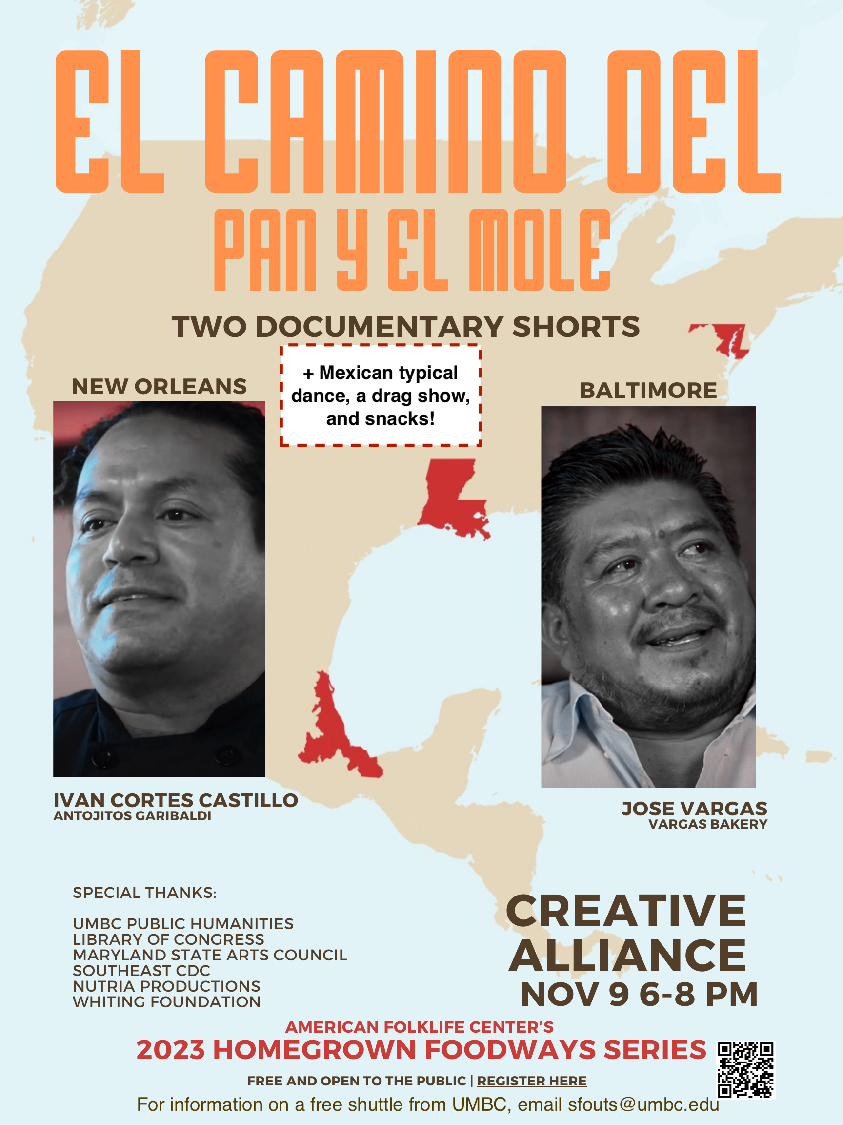 El evento cuenta con programación y dos cortometrajes documentales que narran la vida de restauranteros mexicanos que viven en Baltimore (José Vargas) y en Nueva Orleans (Iván Castillo). Desde su trabajo como vendedores ambulantes hasta la construcción de una comunidad a través de sus tradiciones gastronómicas, José e Iván han adoptado enfoques únicos para crear sus propios nichos en estos lugares urbanos. La programación incluirá un panel de discusión que vincula Nueva Orleans, Baltimore, la inmigración y las costumbres gastronómicas. Barra de efectivo, espectáculos de danza hecho por Jóvenes en Acción, y un show de drag con Ivette Donnelly. Será bilingüe.
