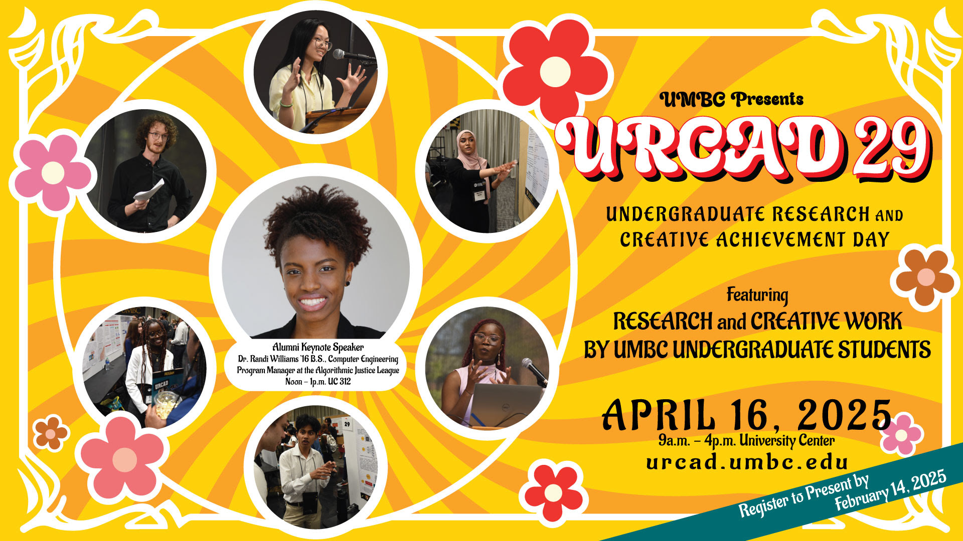 On Wednesday April 16, 2025, Undergraduate Research and Creative Achievement Day (URCAD) will feature research, scholarship, and creative work carried out by UMBC undergraduates. Student work will be shared through oral presentations, posters, artistic exhibits, performances, and film. Over 300 presenters participate annually. Researchers work with faculty mentors on independent research, or research that is part of the mentor’s on-going projects. They are from all disciplines, and can be working on a thesis, capstone project, part of a scholars or honors program, or they can be unaffiliated. This campus-wide celebration of achievement affirms UMBC’s commitment to the twin goals of research and a distinctive undergraduate experience.