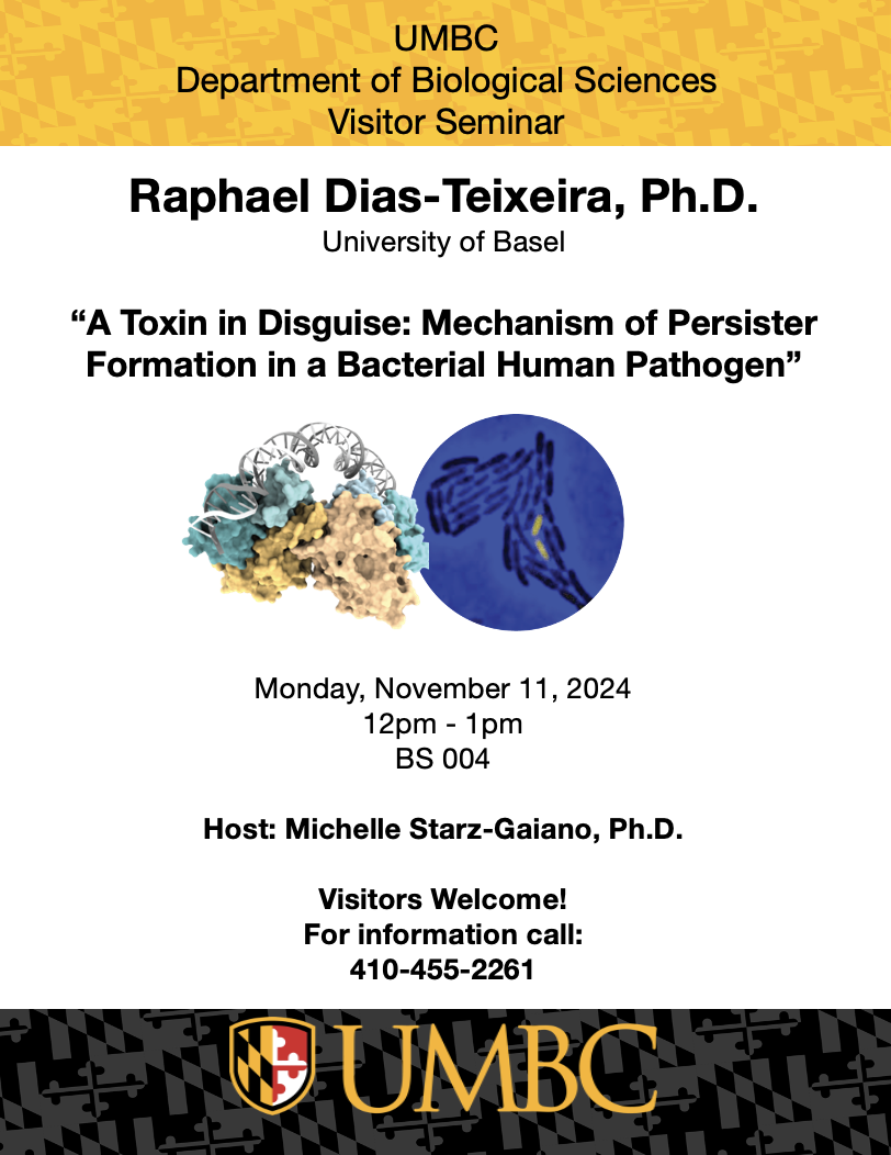 Dr. Teixeira will be presenting, "A Toxin in Disguise: Mechanism of Persister Formation in a Bacterial Human Pathogen".