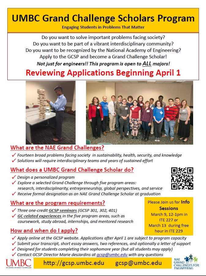 UMBC Grand Challenge Scholars Program - Apply by April 1st