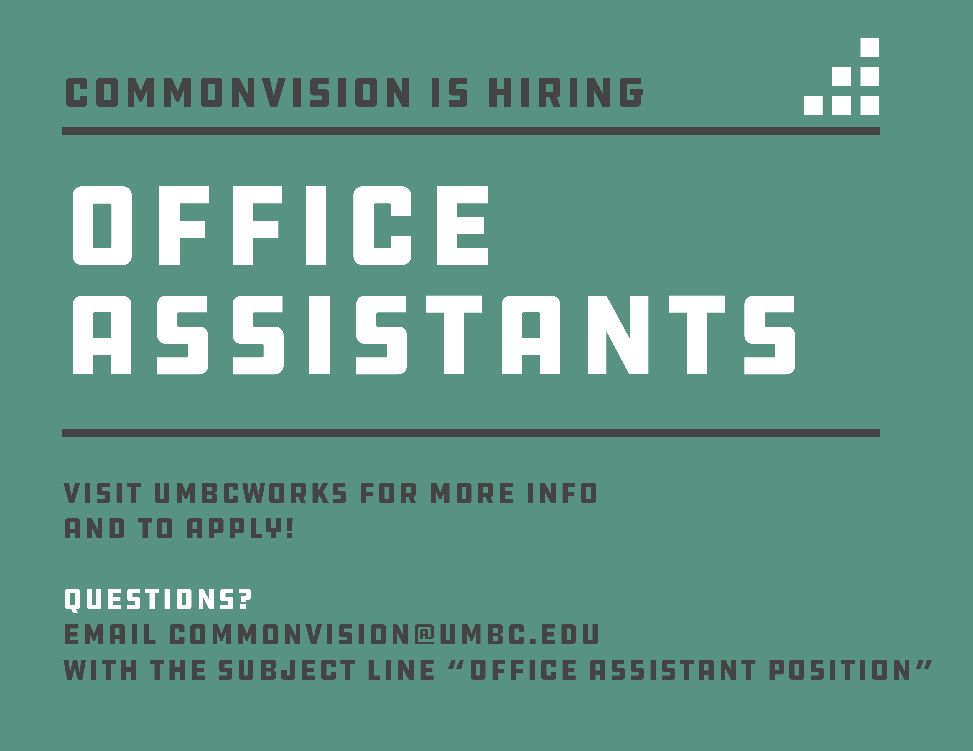 You do not have to be a visual arts major to apply to this position! This position requires working the front desk, so you will be the face and voice of commonvision!!