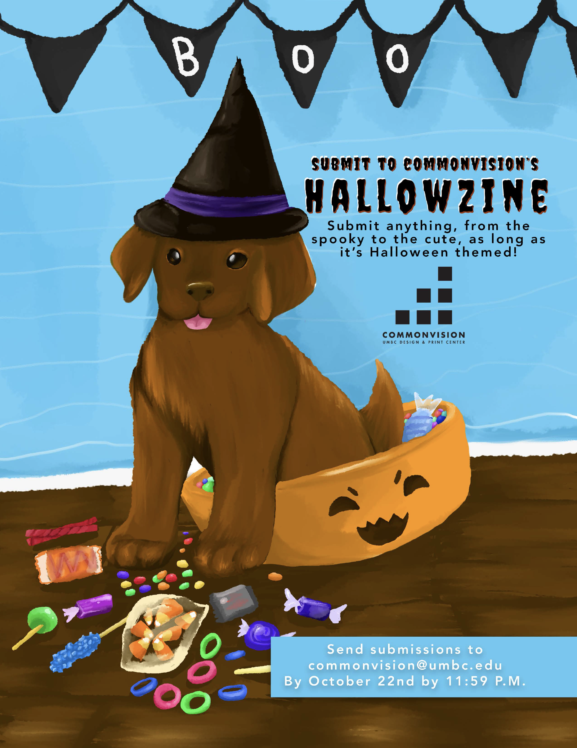 Submissions are due by October 22nd, at 11:59pm. Please send all submissions to commonvision@umbc.edu with the subject line "Hallowzine".