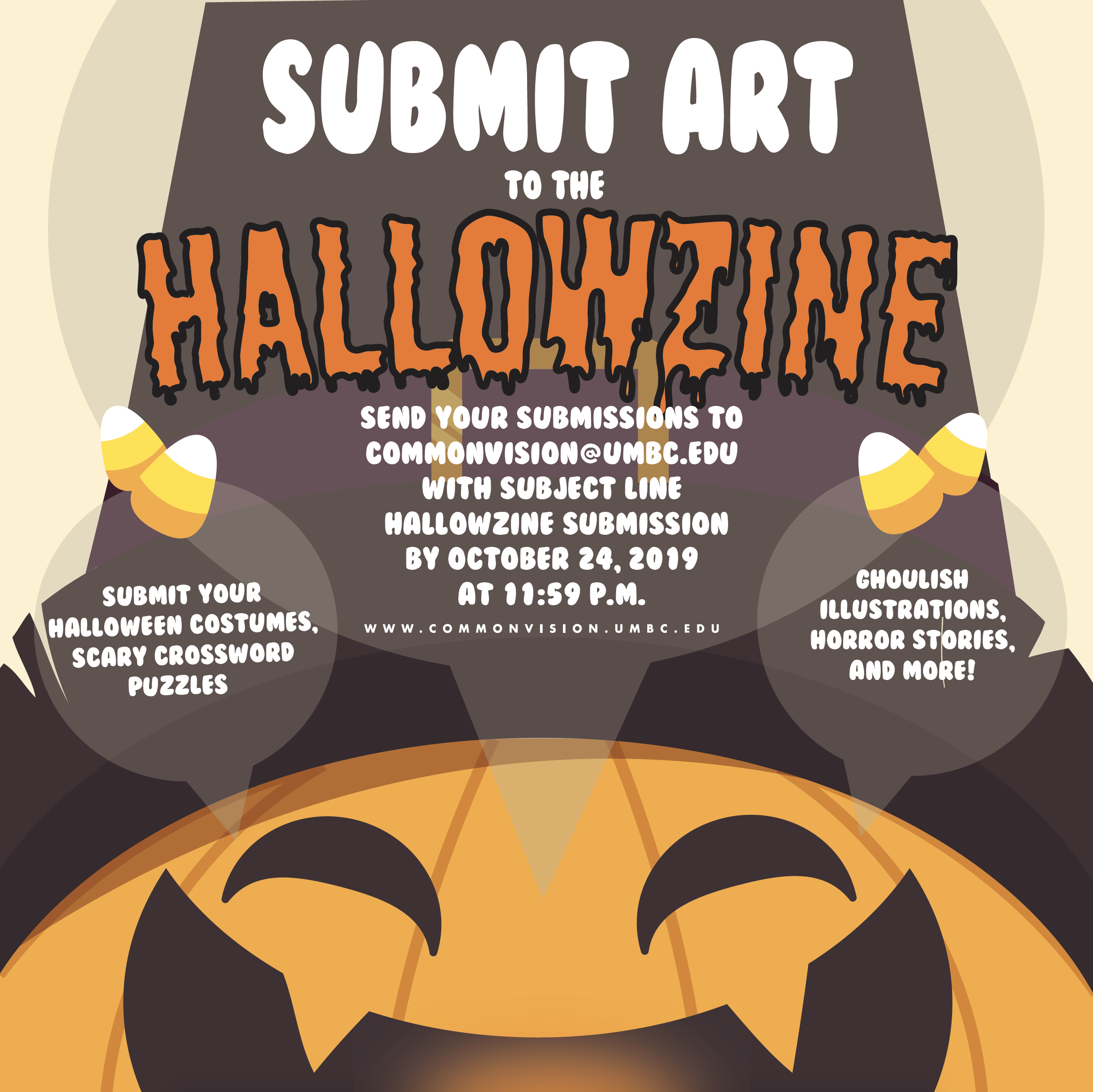 Send submissions to commonvision@umbc.edu with the subject line “HALLOWZINE”!