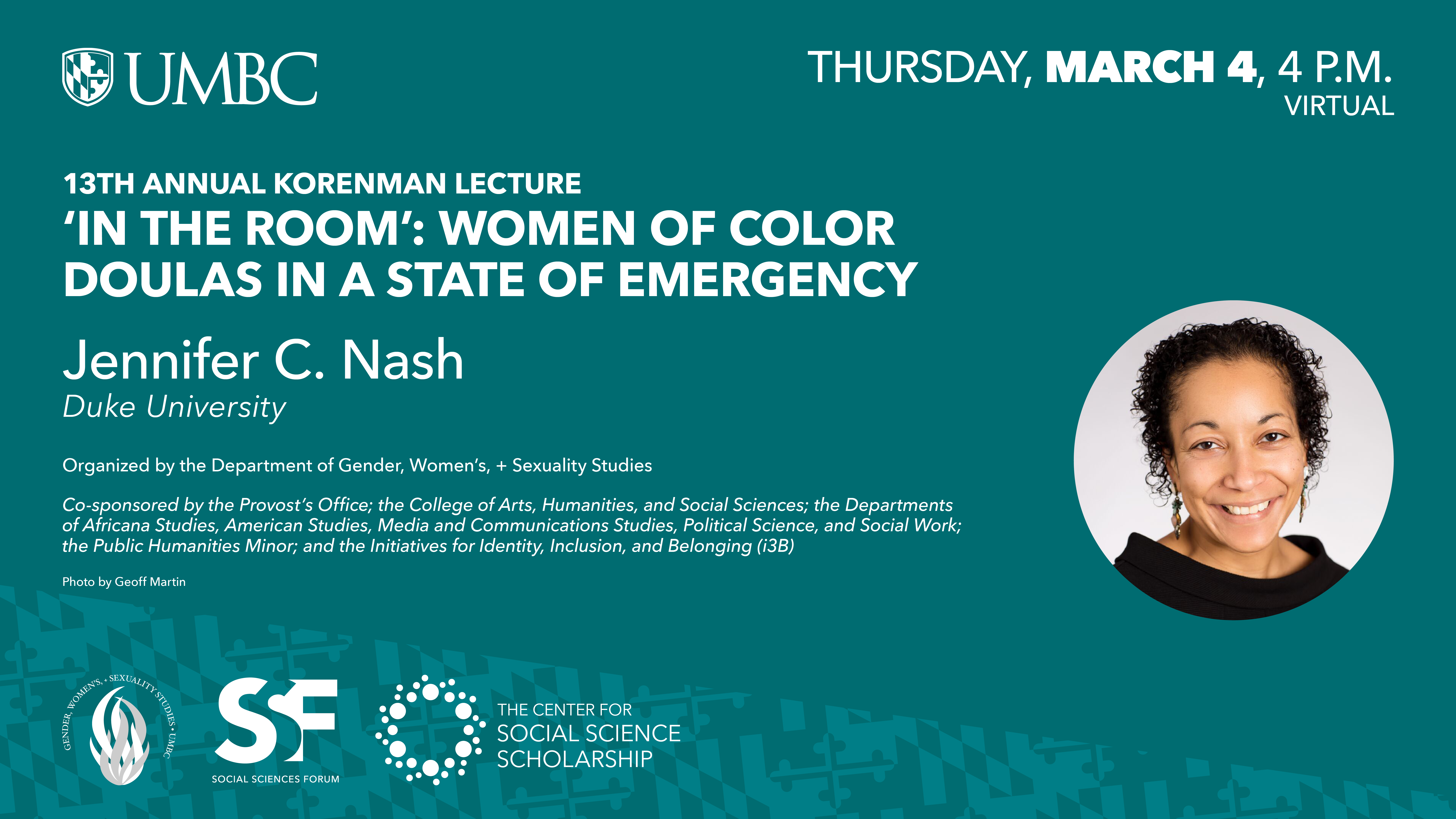 Korenman Lecture organized by the Department of Gender, Women's, + Sexuality Studies. Co-sponsored by the Provost's Office; the College of Arts, Humanities, and Social Sciences; the Departments of Africana Studies, American Studies, Media and Communications Studies, Political Science, and Social Work; the Public Humanities Minor; and the Initiatives for Identity, Inclusion, and Belonging (i3B).