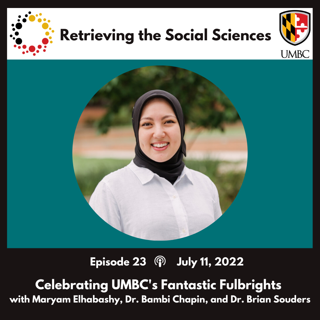 On today's special episode of Retrieving the Social Sciences, we hear a panel discussion about UMBC's social science Fulbright Scholars. Joining us on the panel is Maryam Elhabashy (UMBC '21), a Research Assistant at Rutgers University and a 2022 Fulbright recipient. Maryam's Fulbright project is entitled "Faith, Family, Food, and Fitness: Exploring Trends of Obesity among Kuwaiti Women."