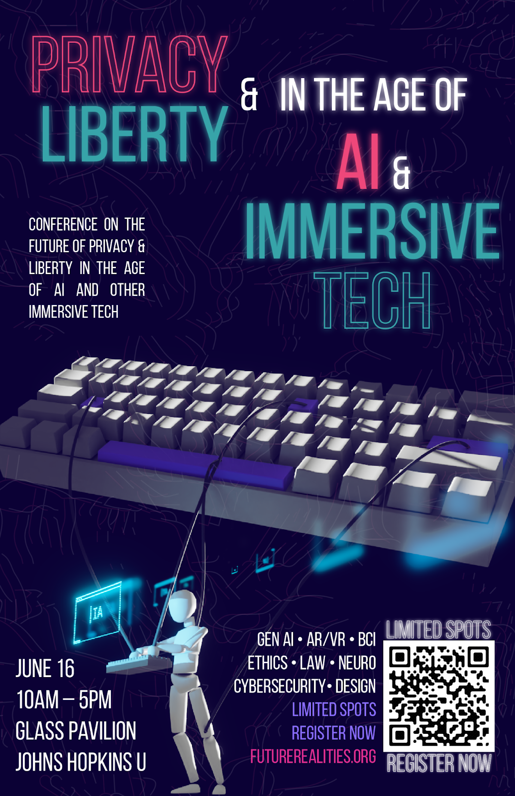 Join leading voices in AI, neuroscience, national security, cybersecurity, public policy, and human-rights for the Privacy and Liberty in the Age of AI and Immersive Technologies (PLAITS) Conference, a free, full-day event hosted at Johns Hopkins University on June 16.