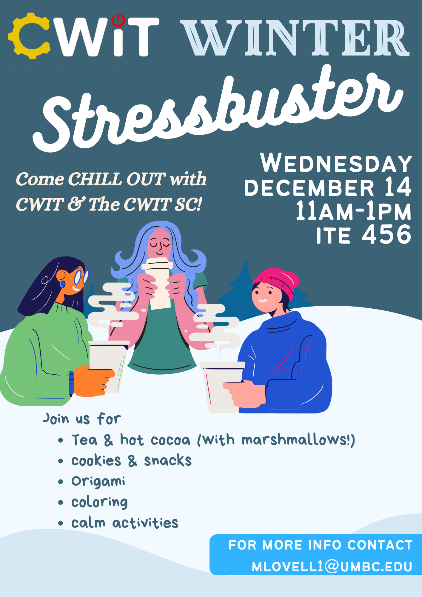Join us in ITE 456 11am-1pm to chill out with CWIT & the SC!