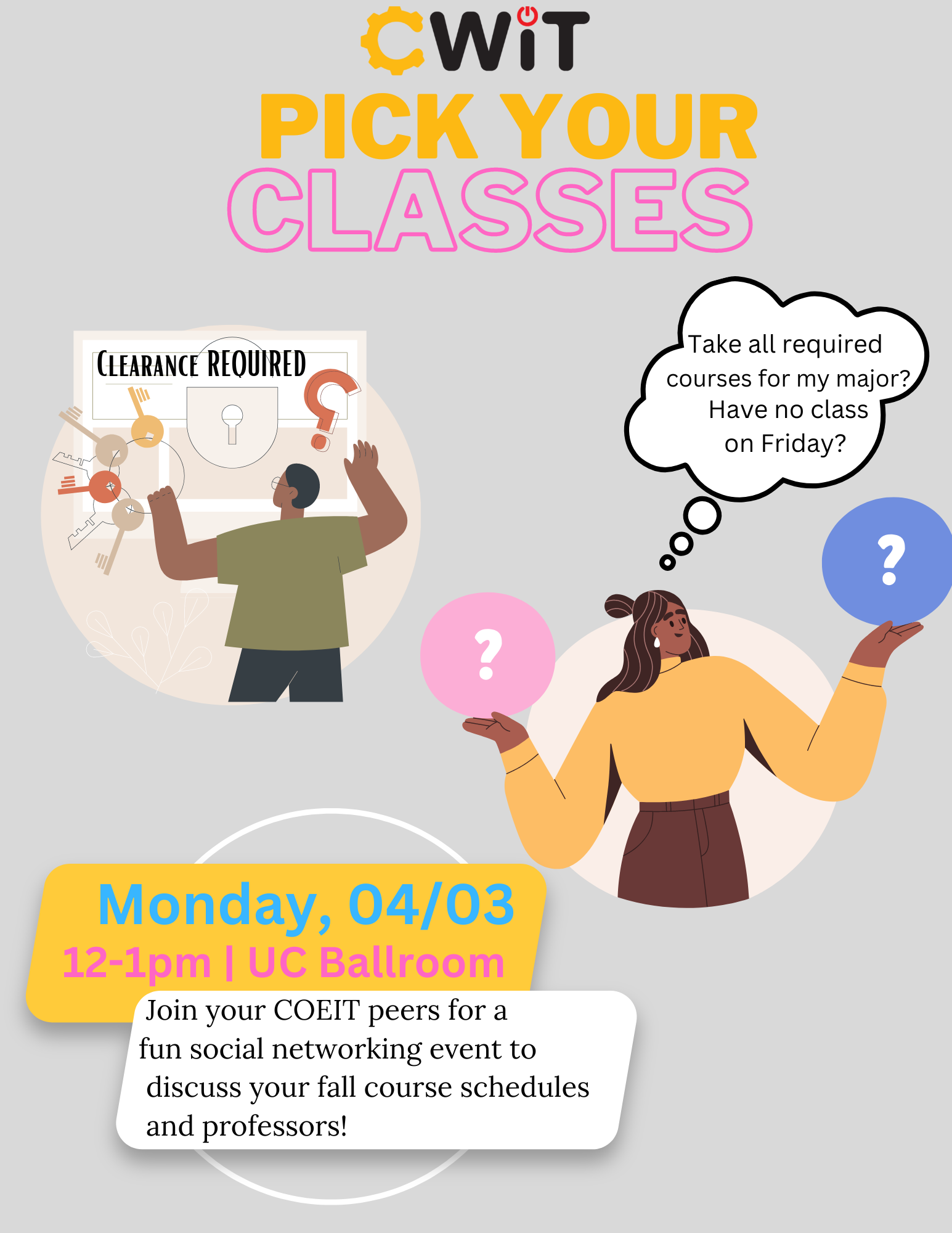 Meet with your COEIT peers and pick your classes for Fall!