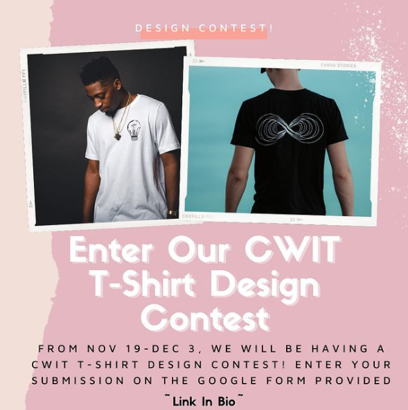 Hi everyone! This year, CWIT Student Council will be sending out t-shirts to our community over winter break. We would love to have the design be created by YOU!