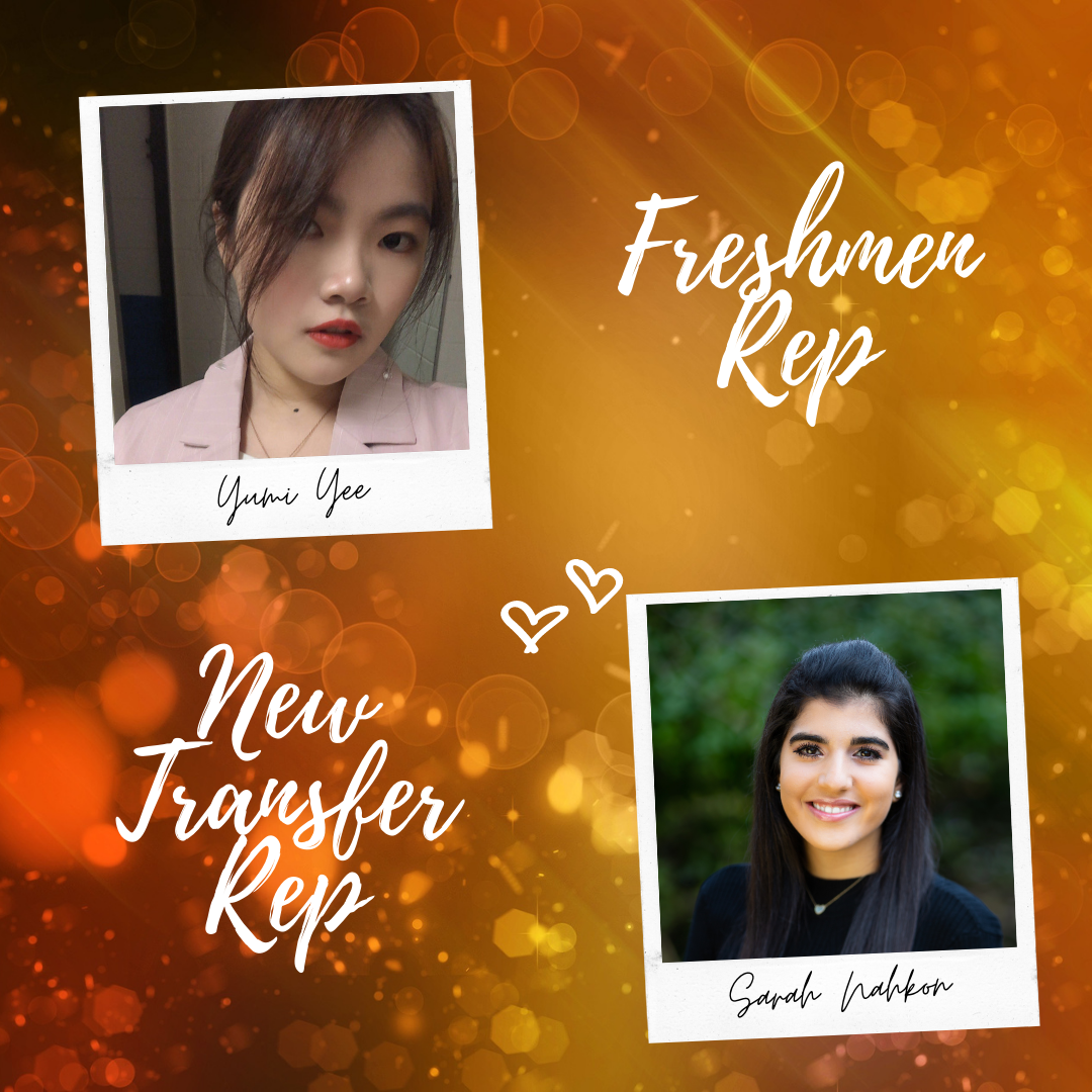 Congratulations to our 2020-2021 Freshmen Representative, Yumi Yee, and New Transfer Representative, Sarah Nakhon! We can't wait to see what great things you do this year!!!