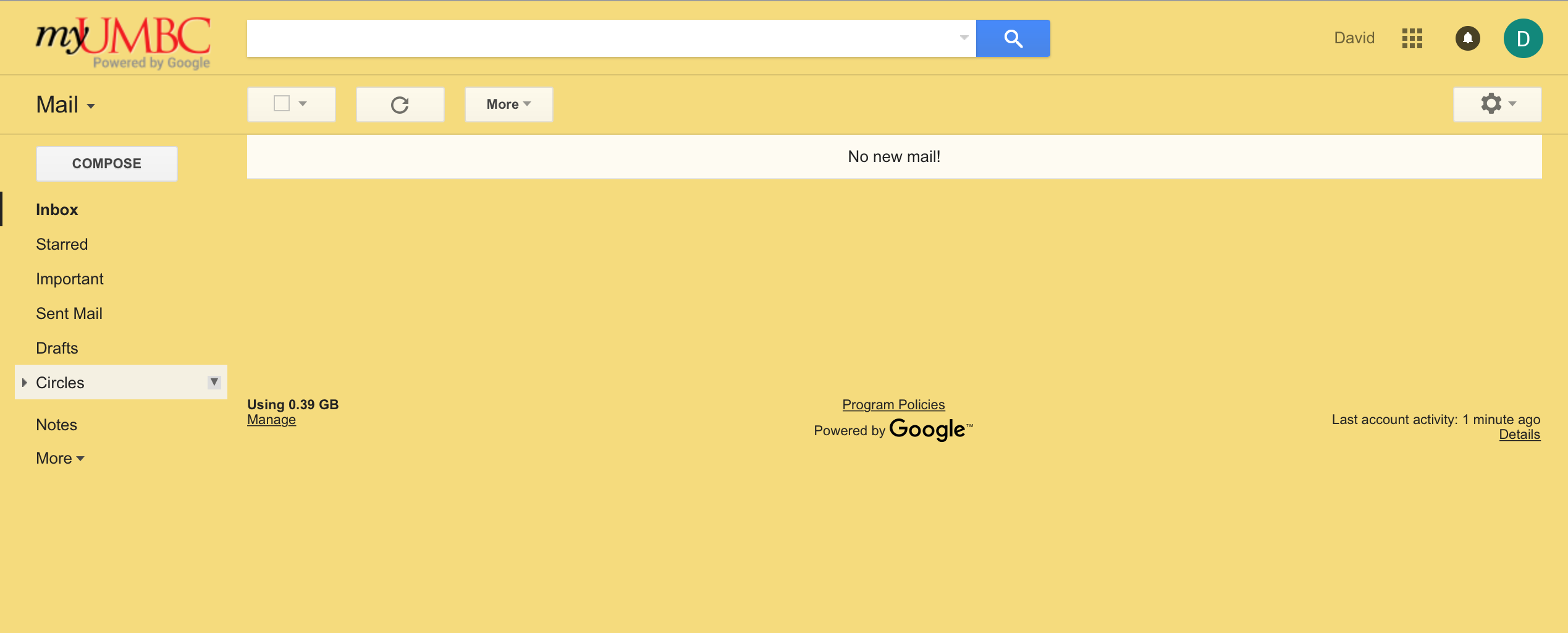 Old UMBC hosted email with limited mail storage. In Gmail, there is no limit to the amount of mail you can store.