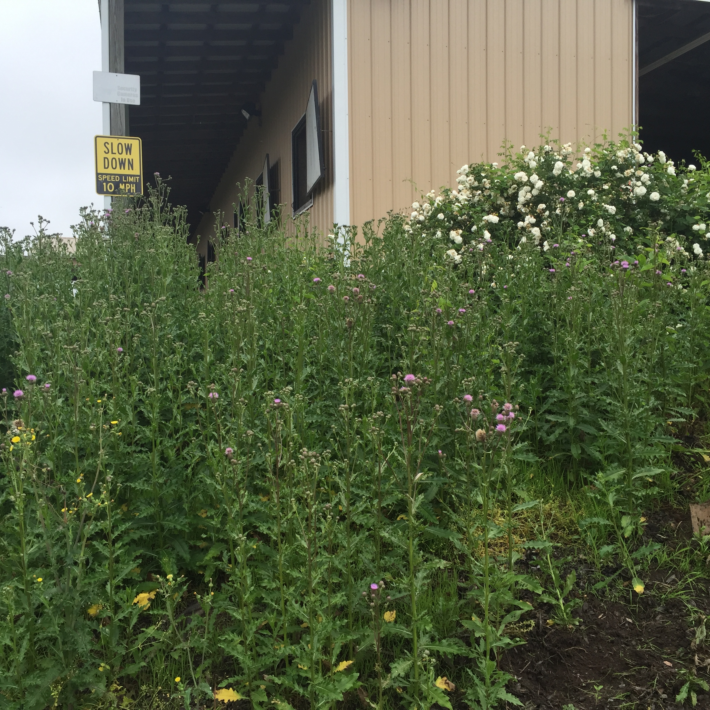 After dealing with those prickly weeds, the area is now clear and mulch was placed to control the return of the weeds.