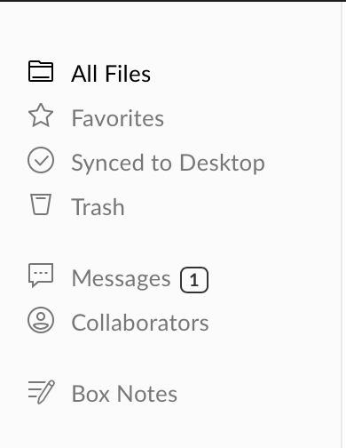 Screenshot of sidebar navigation in the new box experience.