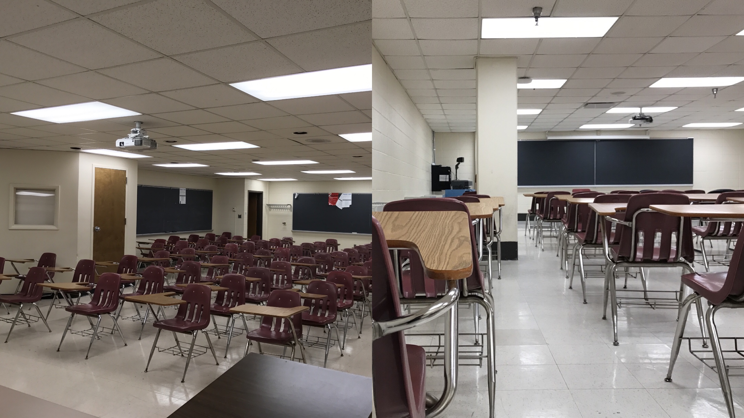 On the left, Sondheim room 101 and on the right, Sondheim 409. Both rooms will go under renovations starting Summer 2017 and are expected to be completed before the start of Fall 2017.