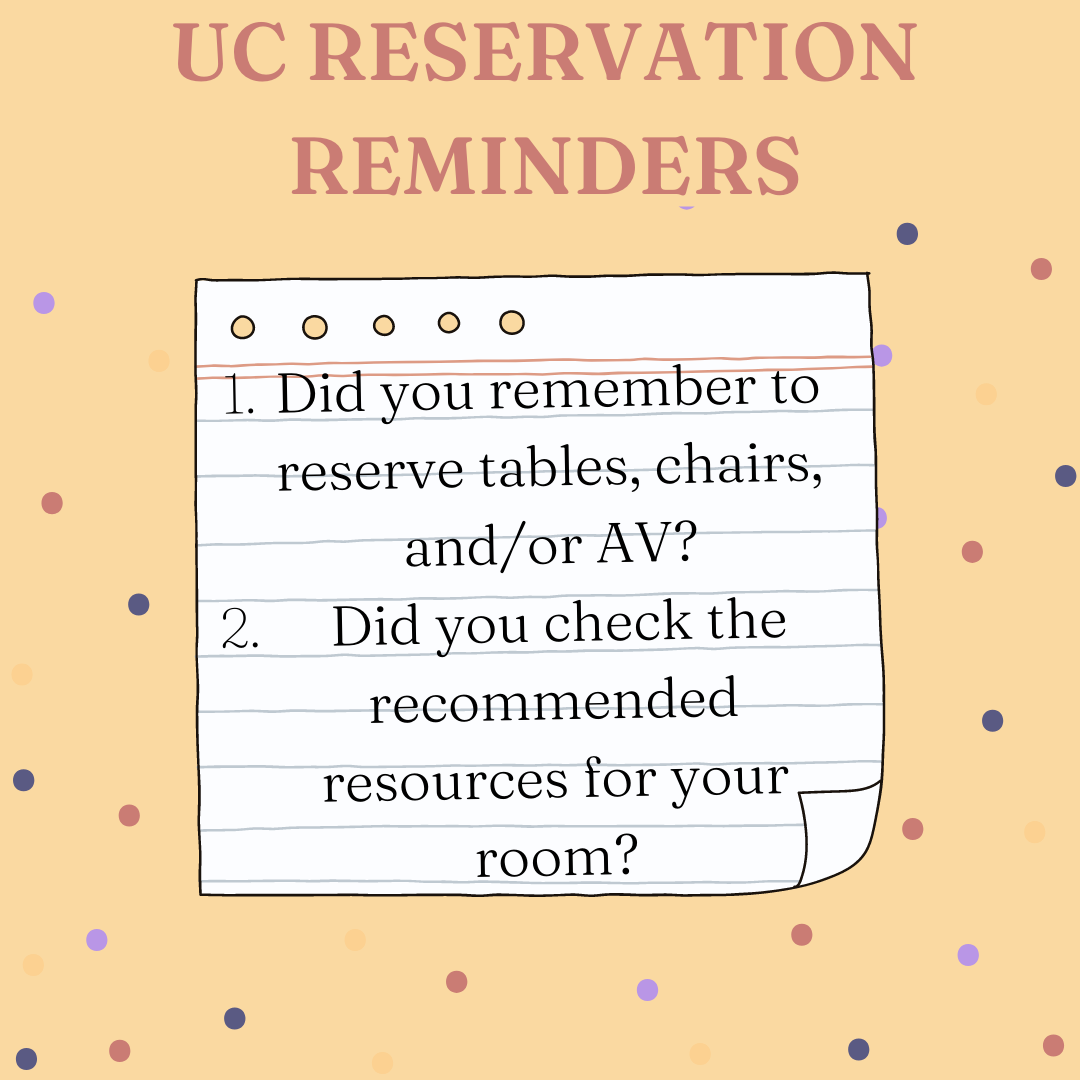 1. Did you remember to reserves tables, chairs, Audio Visual? They do not come included