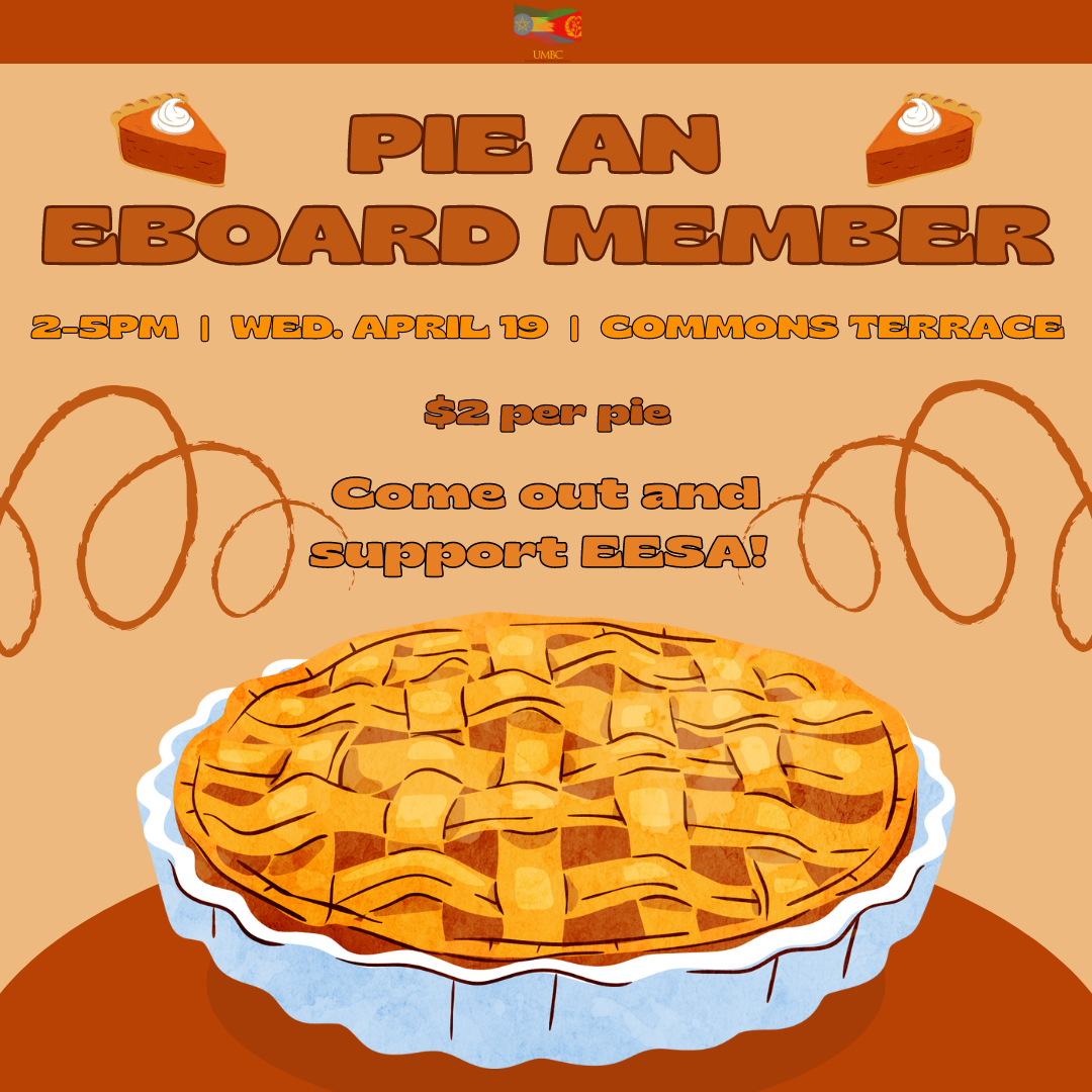 Come out to the Commons Terrace from 2-5pm, this Wednesday for the opportunity to pie our E-Board members in the face! You do not want to miss this!