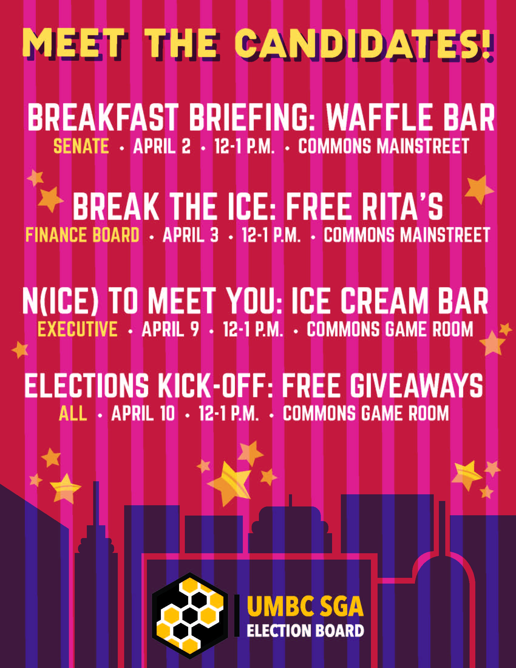 The following events are being held over the next few weeks for students to meet the SGA Candidates:
