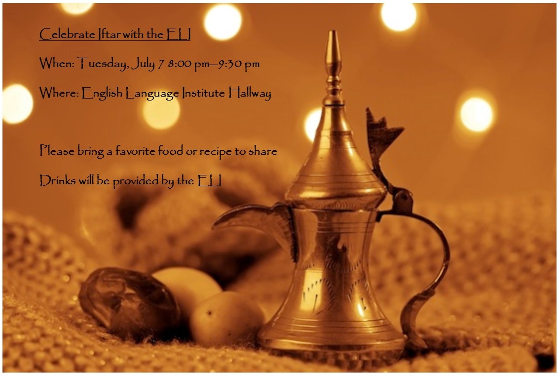 We also invite students to prepare their favorite recipes for the event. Here is your chance to show other students some of your favorite foods! The ELI will provide drinks and refreshments.