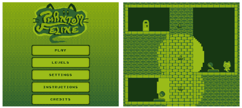 Photo (Phantom Feline): In Mr. Thompson’s Phantom Feline, the cat must make it up to the door in each level by passing through illuminated walls. Photo Credit: J. Thompson/ESI.