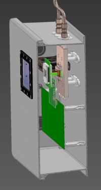 Photo: The full assembly of the UV/VIS FPA (center gray part) and associated electronics in a metal enclosure for electronics testing. Photo Credit: L. Sobieski/ESI.
