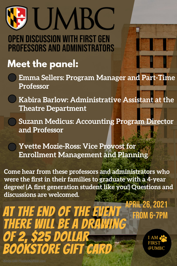 There will also be a drawing of two $25 UMBC bookstore gift cards at the end of the event!!!