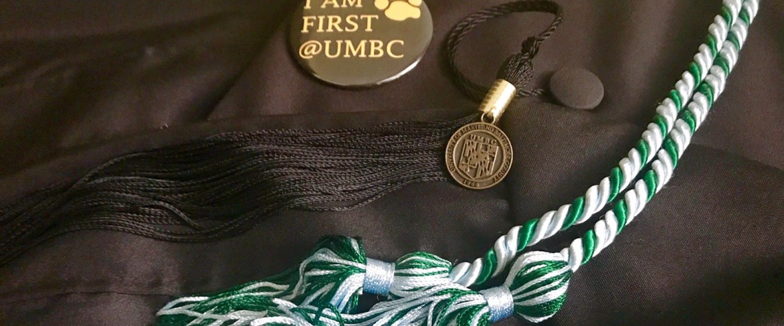 First-generation college graduates were featured in UMBC's magazine in November and received a special green and blue cord in the mail, with the following message: