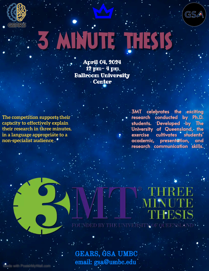 The GEARS Team is happy to invite you to its flagship event of the year 3 Minute Thesis on 4th April 2024 12 pm to 4 pm, at UC Ballroom.