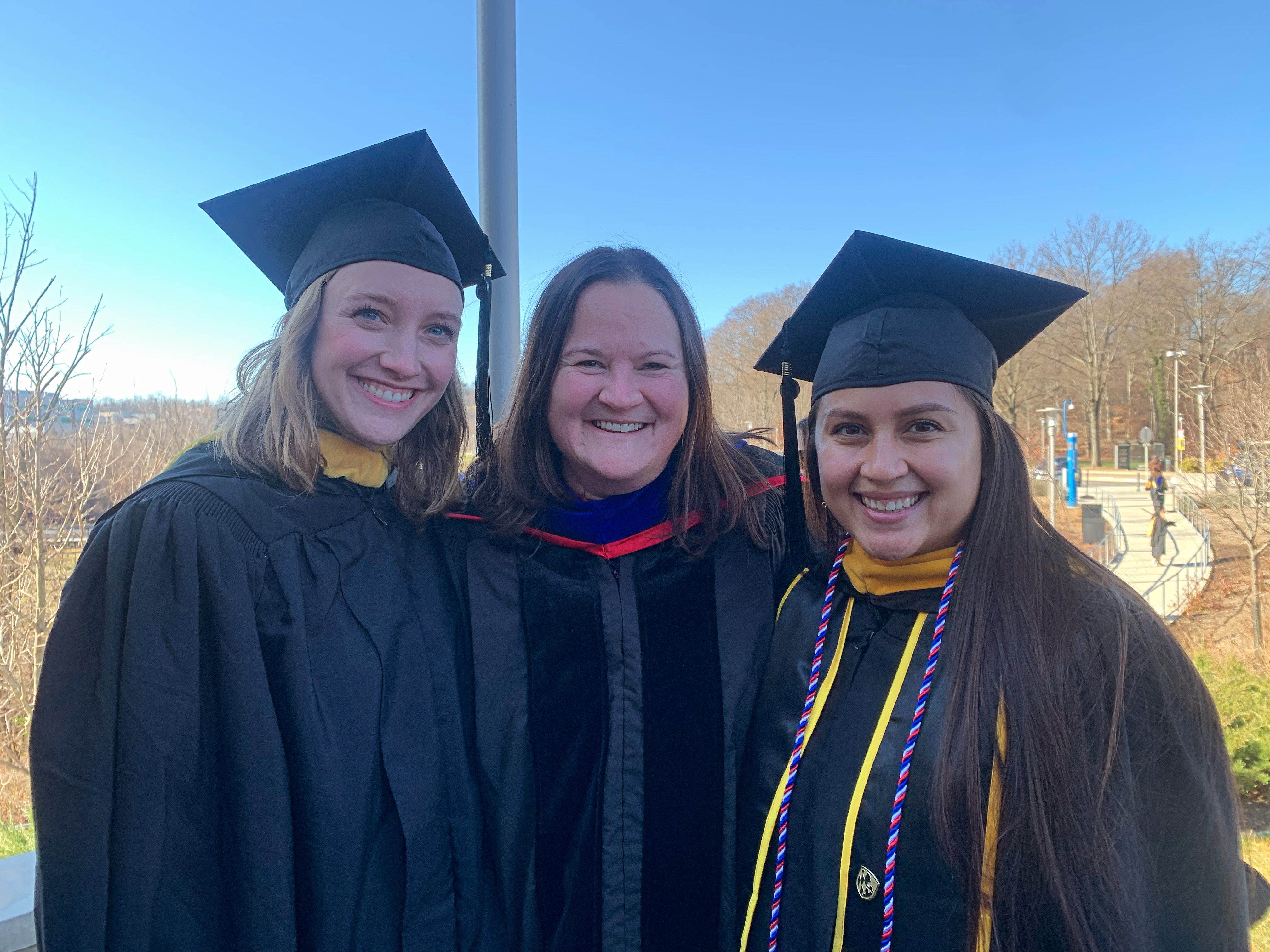 This morning was UMBC's graduate commencement ceremony! We had several students from our GES department in attendance, and we'd love to highlight them! The first photo features, from left to right: Selenea Gibson, Drew Powell, Rhonda Plofkin, Mackenzie Bodman, and Valerie Parson. The second photo features Mackenzie and Valerie along with Dr. Maggie Holland.