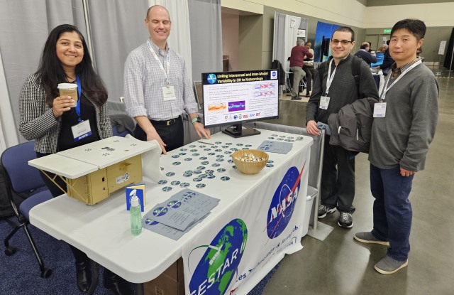 Scientists and staff plus one of many visitors. (Manisha Ganeshan (613/MSU), James Hale (Asst. Dir., ESRA), AMS attendee, and Young-Kwon Lim (610.1/UMBC))