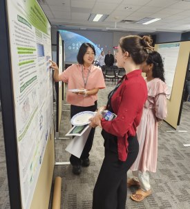 Eun-Gyeong Yang (610.1/UMBC) discussing her poster with attendees.