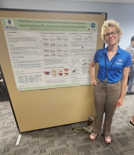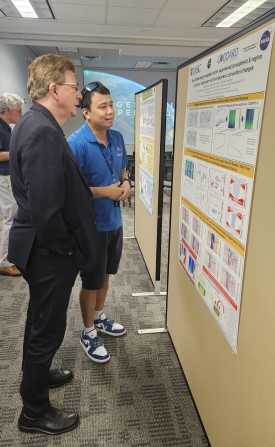 Dr. Nick Krotkov (NASA/GSFC) and Inia Soto Ramos (616/MSU) with a poster by Ocean Ecology Lab members.