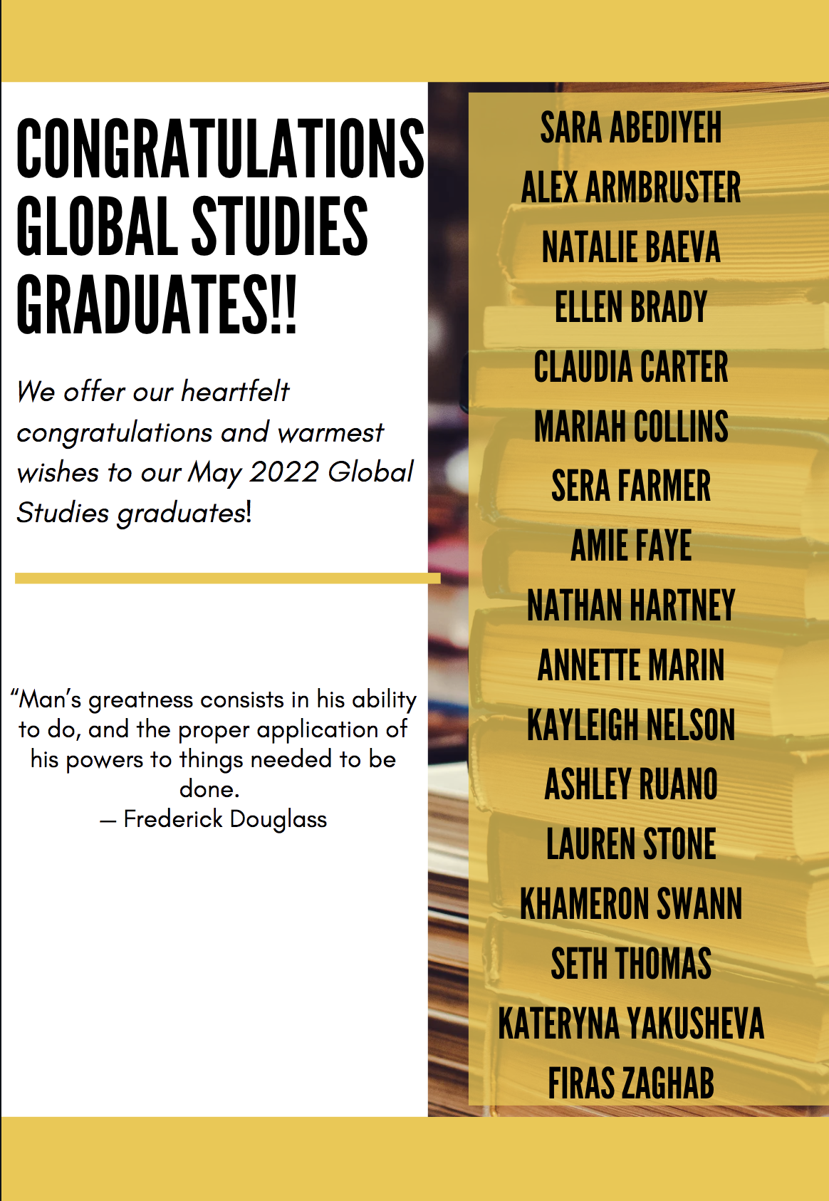 Congratulations to our May 2022 Global Studies Graduates!