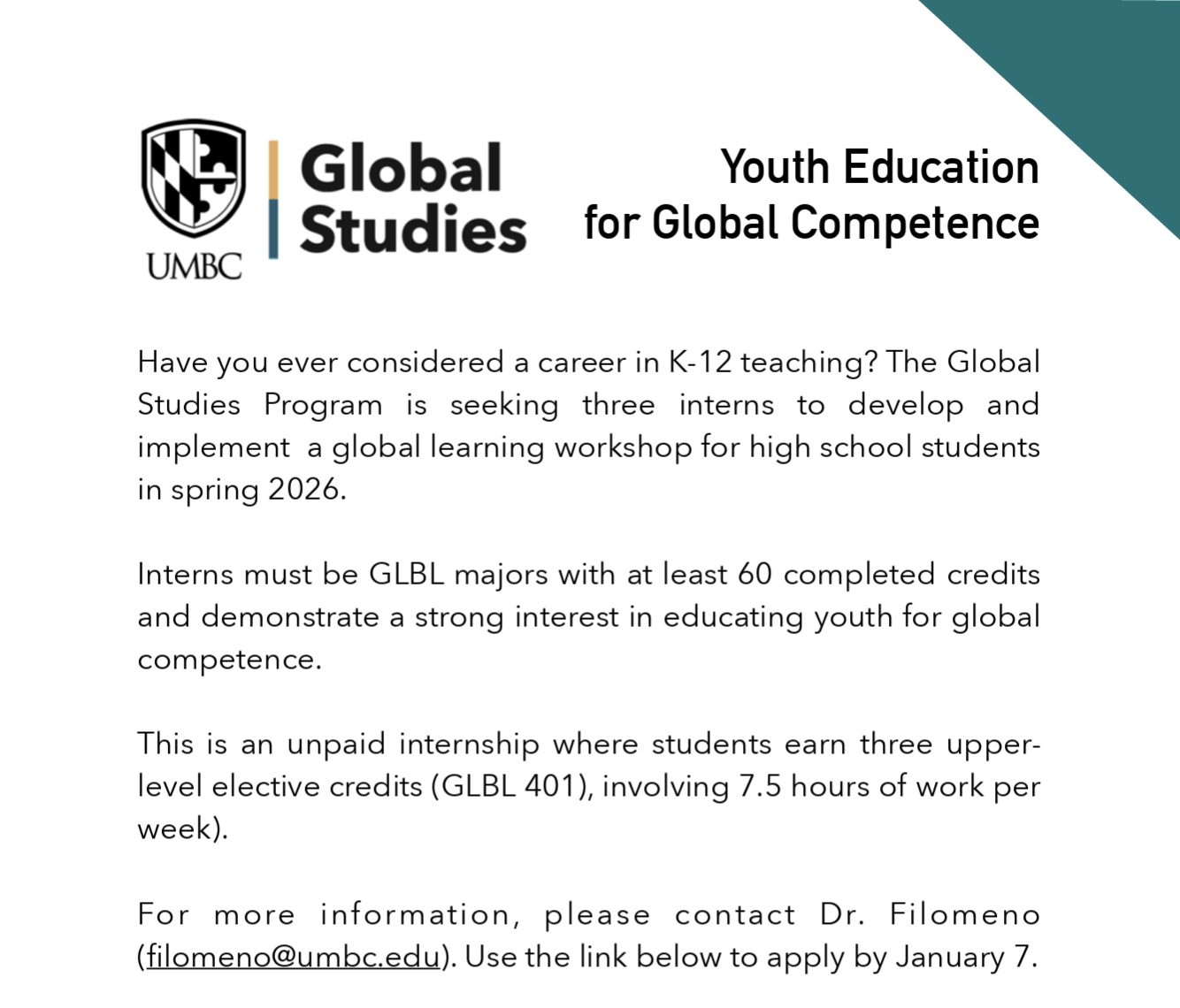 Applications Open until 7 Jan: Youth Education for Global Competence Internship