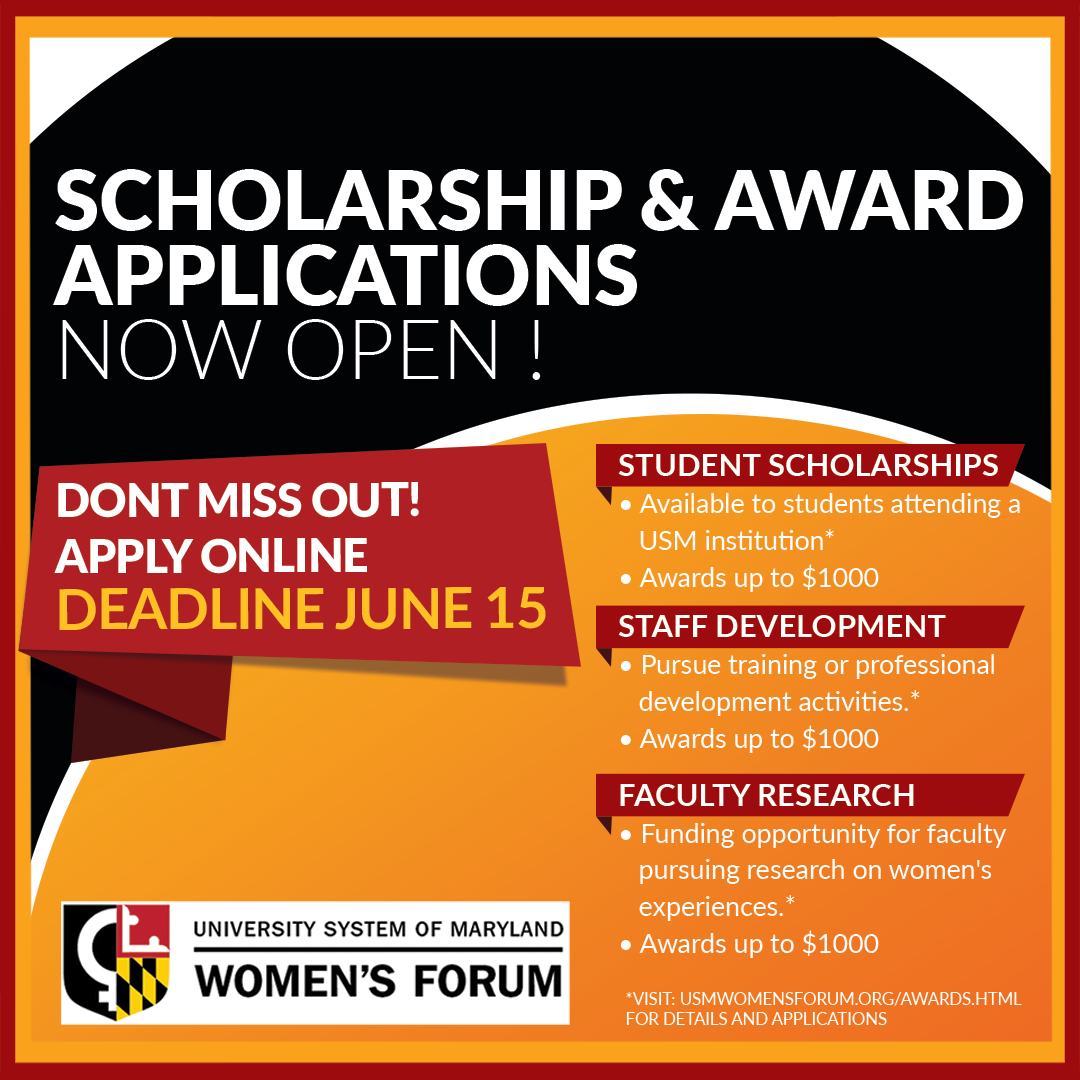 The University System of Maryland (USM) Women's Forum is offering Student Scholarships, and we need your help to spread the word!