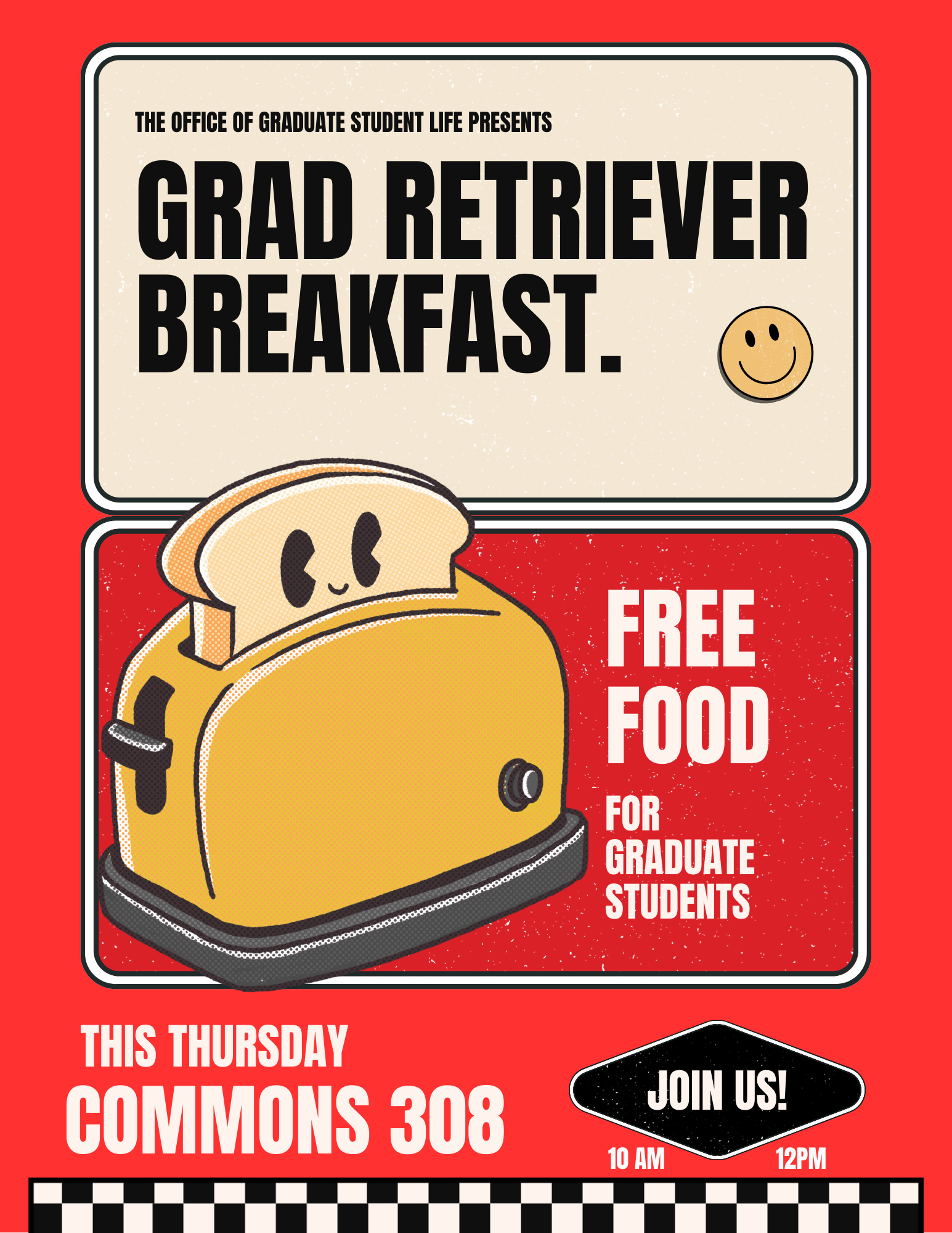 Take a break and start your Thursday morning with us at Grad Retriever Breakfast, hosted by the Office of Graduate Student Life!