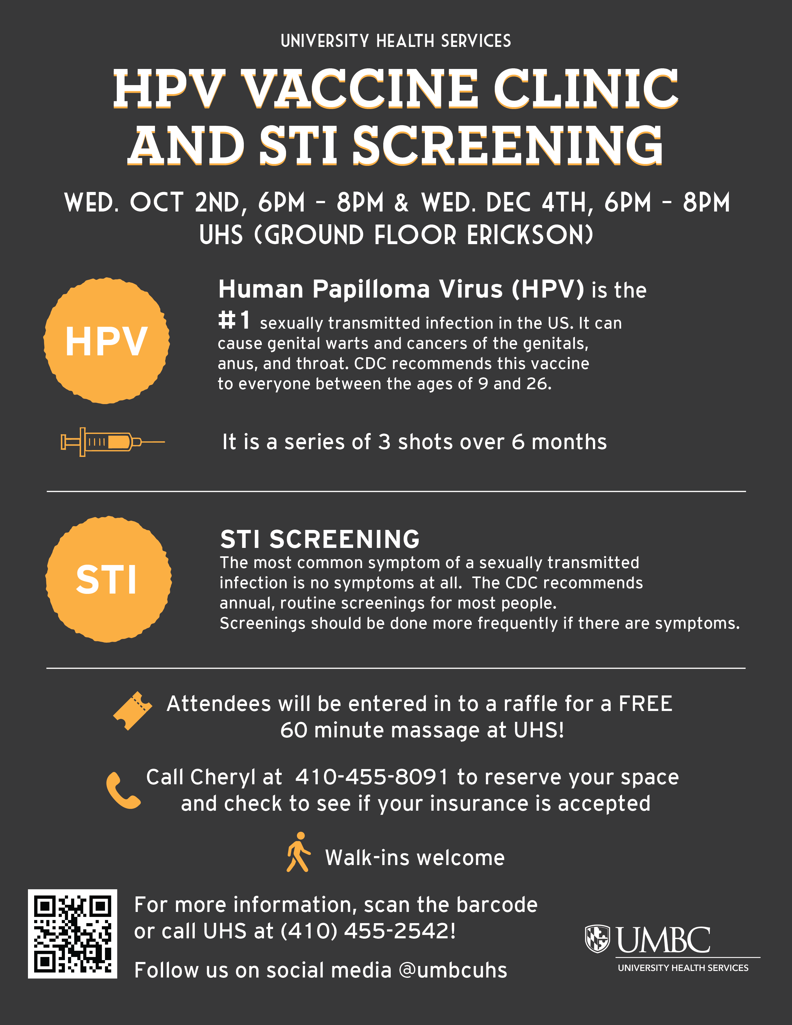 For more information about the vaccine, screenings, or other UHS services contact 410-455-2542.