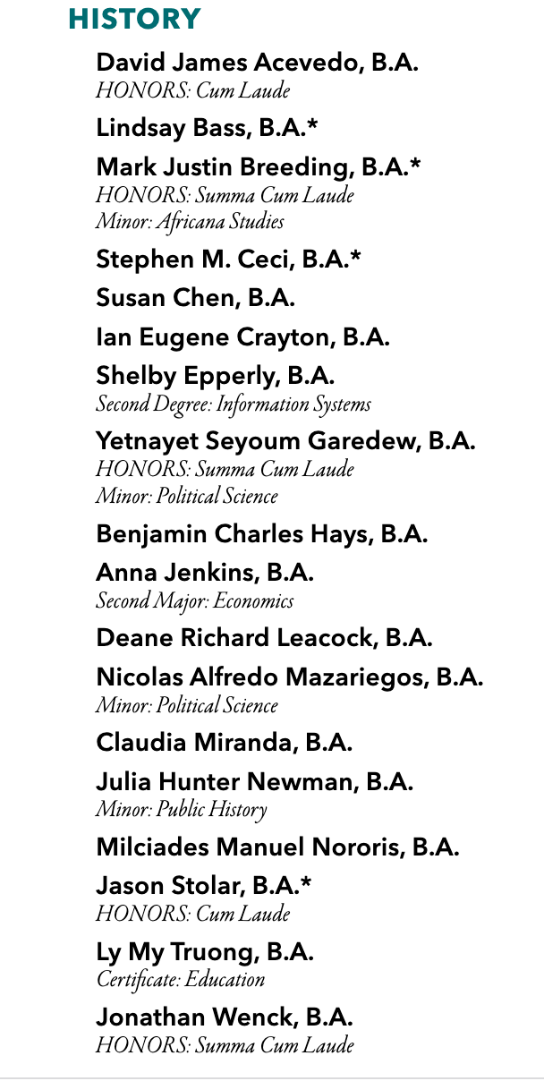 Congratulations to our Fall 2021 History B.A.s!