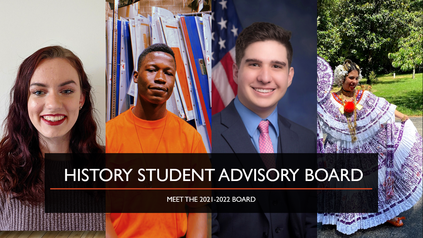 Members of the History Department's Student Advisory Board foster connections between faculty members, fellow students, and prospective students interested in UMBC's History Department. They offer feedback on undergraduate curriculum, courses, and policies, help with recruitment, assist in event planning, and provide a voice for students at the departmental level. We are excited to introduce you to our 2021-2022 Council members.