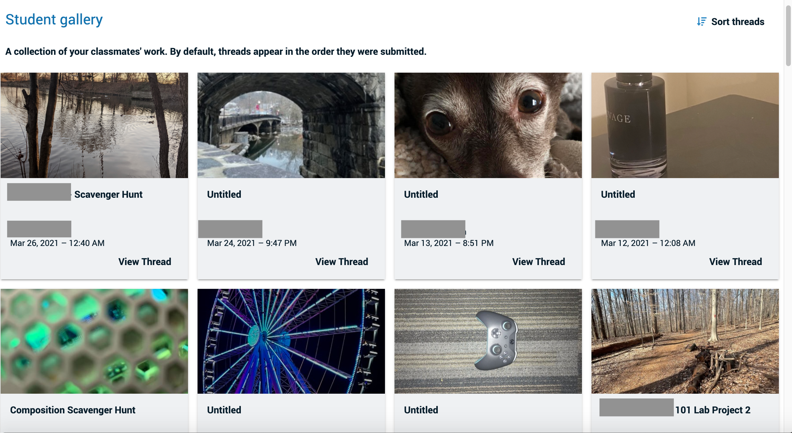 The Student Gallery feature makes peer critique in VoiceThread possible; it allows students to see submissions from their peers and add audio, video, and text-based comments, allowing for asynchronous peer feedback sessions.