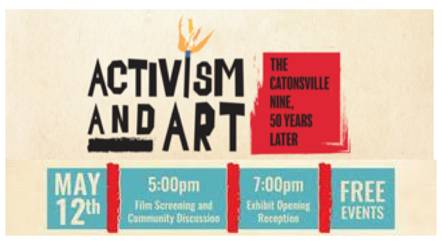 Our Catonsville Nine 50th Events continue…Please come out tomorrow (Sat. May 12) for UMBC Alum, Joe Tropea’s “Activism and Art” exhibit opening and screening of Lynne Sachs’ short documentary Investigation of a Flame. The exhibit is looking fabulous…artwork from C9 member Tom Lewis and great context pieces too…And Lynne Sachs (and others) will be there for documentary Q&A.Here’s the link where you can register for this FREE event at MDHS! https://www.mdhs.org/activism-and-art