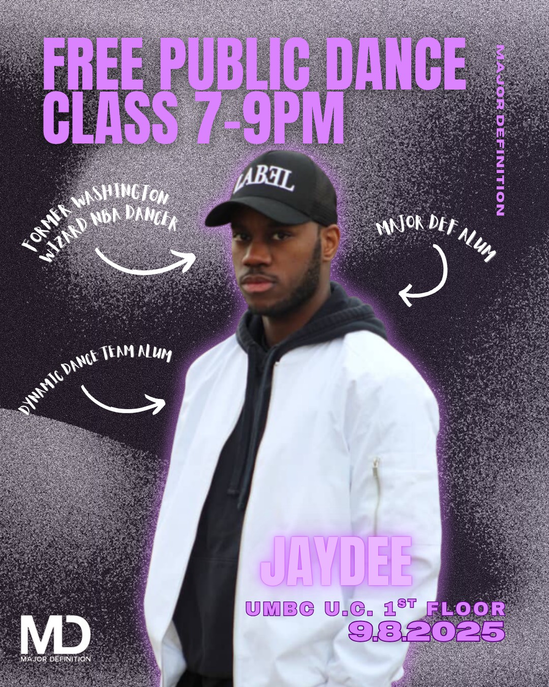 Our 1st public class is coming up this Monday! We invite dancers of ALL skill levels to stop by and dance with us. We are starting off strong with former Wizards dancer and M.D alum Jaydee teaching. It is guaranteed to be a fun time- don't miss out.