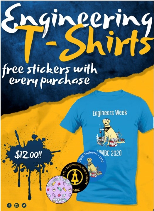 UMBC engineering t-shirts with fun stickers included are for sale by Tau Beta Pi Engineering Honor Society MD Delta Chapter at UMBC.