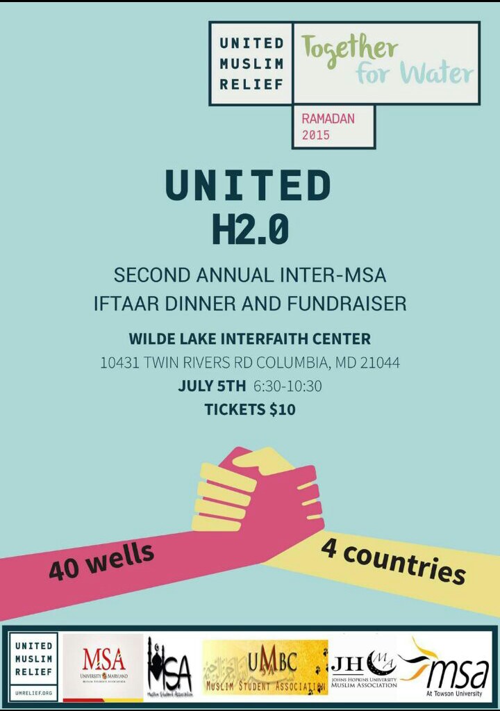 If your answer to any of the above is YES then come on out to United Muslim Relief, UMD, JHU, UB, Towson and UMBC MSA's United H2.0: 40 Wells, 4 Countries!