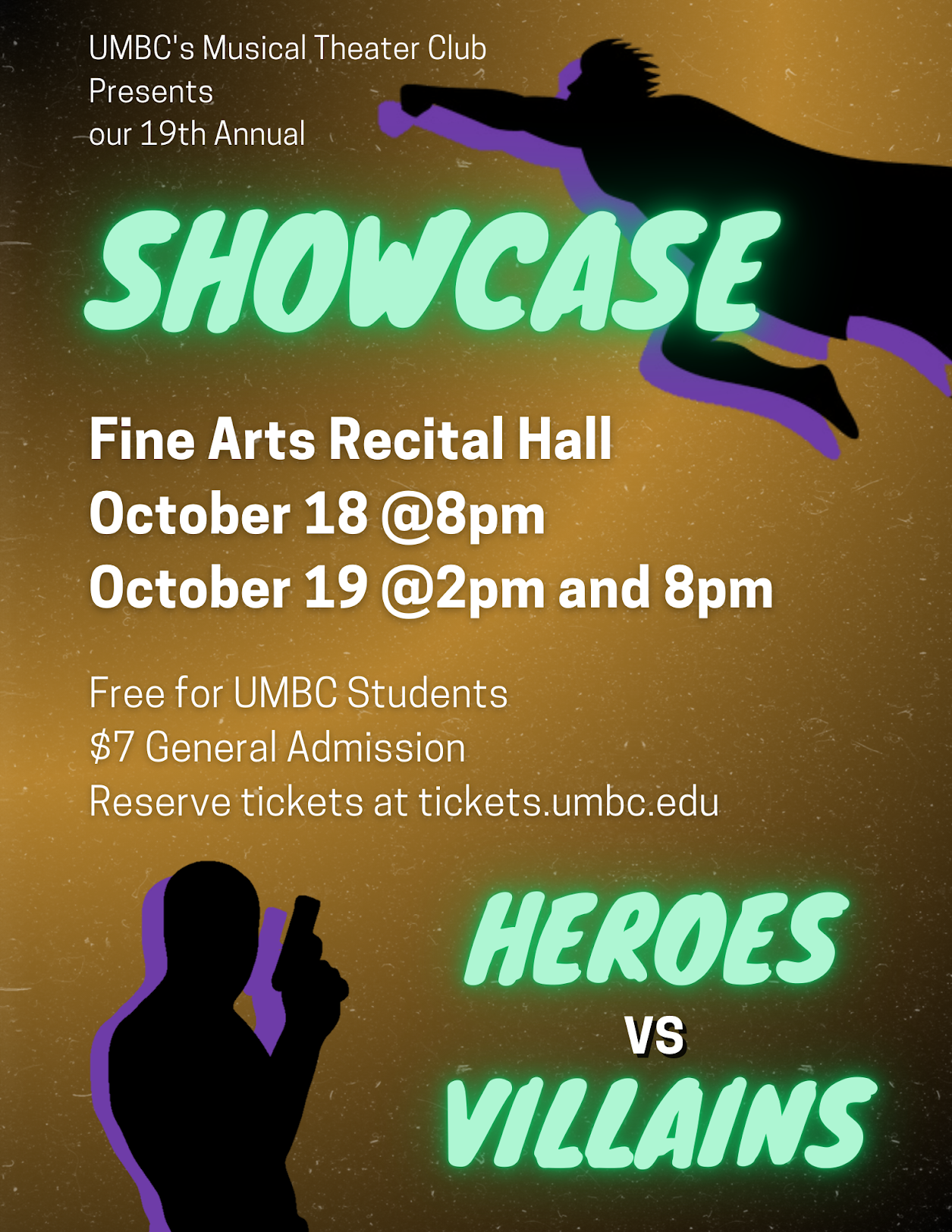 Join us for MTCs annual fall showcase! This year's theme is Heroes versus Villains Our showcase is a collection of student-directed musical numbers that fall into this year's theme. Including songs from Hamilton, Tangled, and more!!