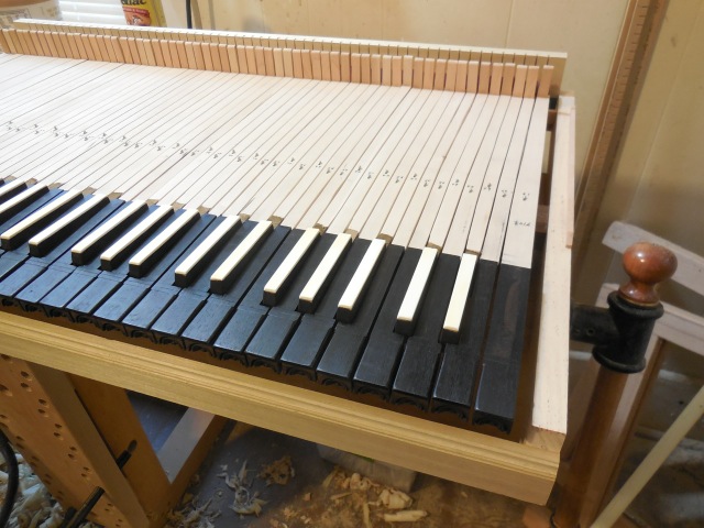 More progress has been made on our double manual harpsichord! The keys are being finished up and the lid has been made!
