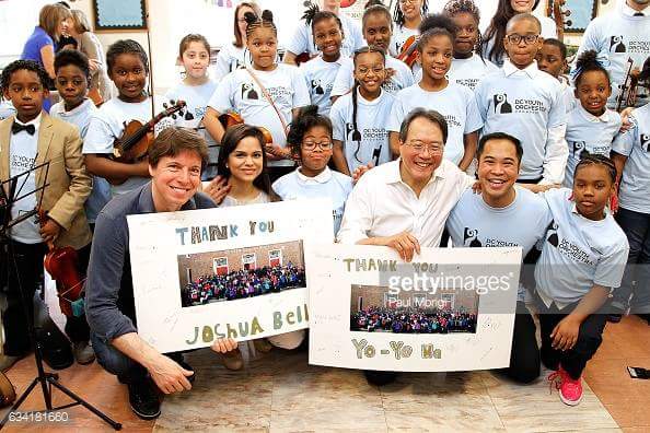 Johnny Walker, music performance major, and his orchestra students at Bunker Hill Elementary School performed with Yo-Yo Ma and Joshua Bell. The collaboration was supported through the Turnaround Arts program, an initiative created to help schools across the country provide more resources for music and the arts. The day included student performances for Ma and Bell, story telling, and workshops led by the two world renowned musicians.