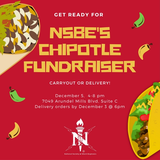 What's better than Chipotle that helps out your local NSBE chapter? How about Chipotle that WE DELIVER TO CAMPUS FOR YOU! Just use the following link to fill out your order by Dec 5th.