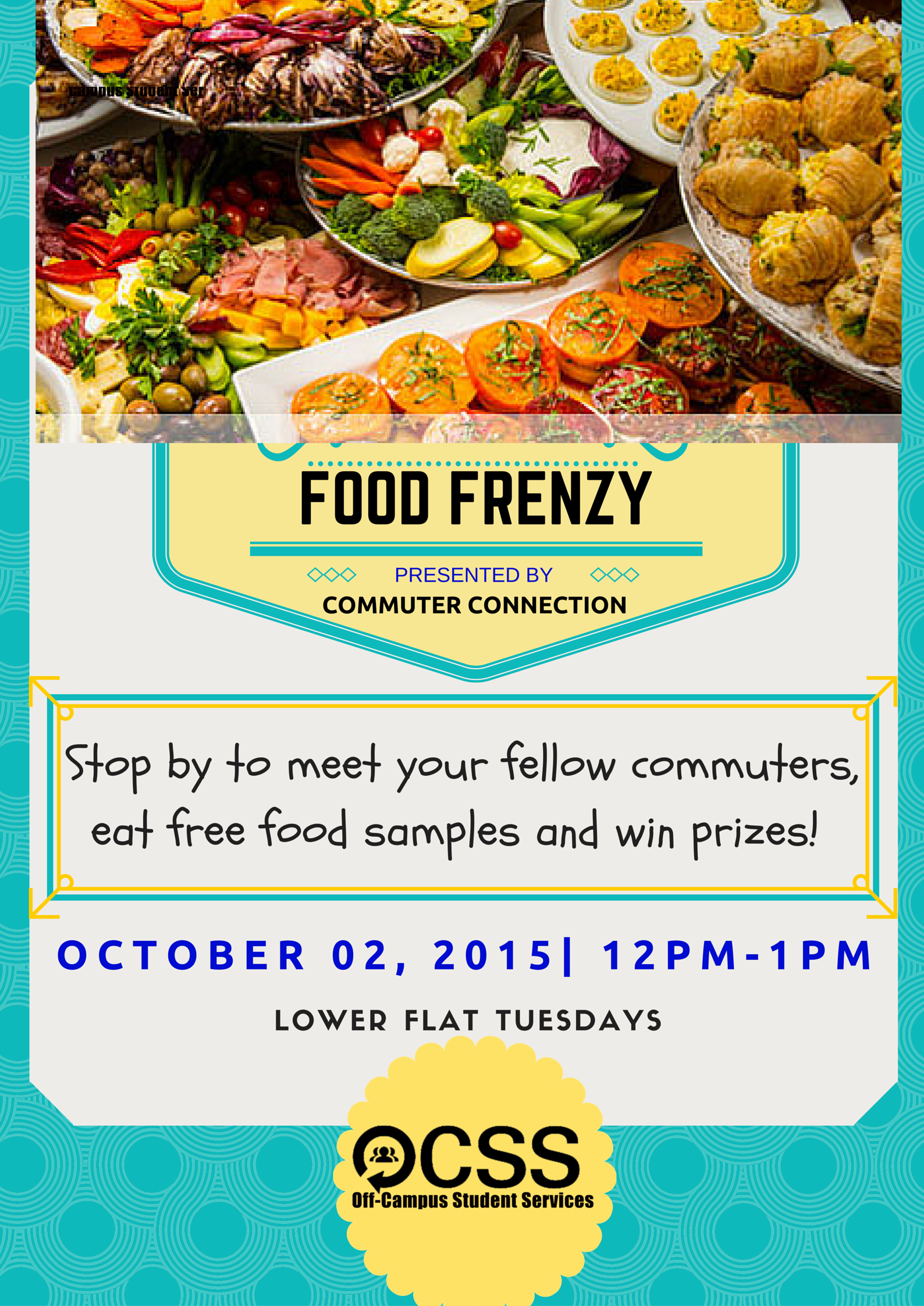 This event will be about all the food options offered on campus. Mostly all of the food places on campus will be present and give out sample food items. Prizes will also be given out. We hope to see you all there!