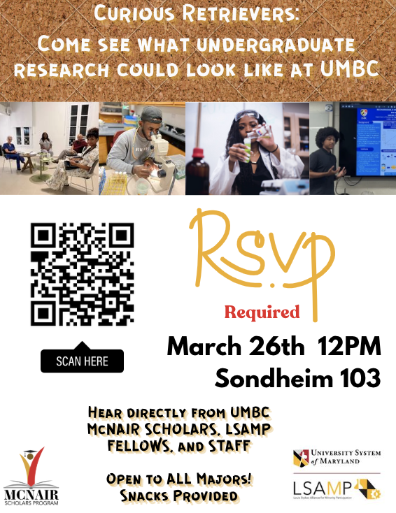 On March 26th McNair Scholars and LSAMP Fellows and Staff will be there to help you learn about the importance of Undergraduate Research and what that could look like for you at UMBC! RSVP is Required sign up here while space is still available.