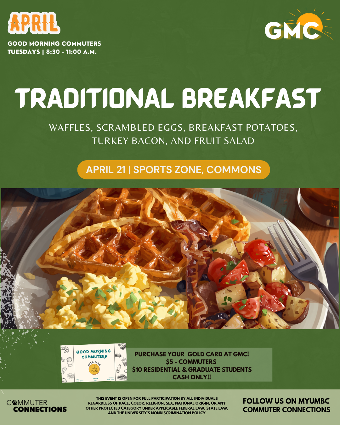 Join us for breakfast with fellow commuters and connect with helpful on-campus resources. There's no better way to kick off your day!